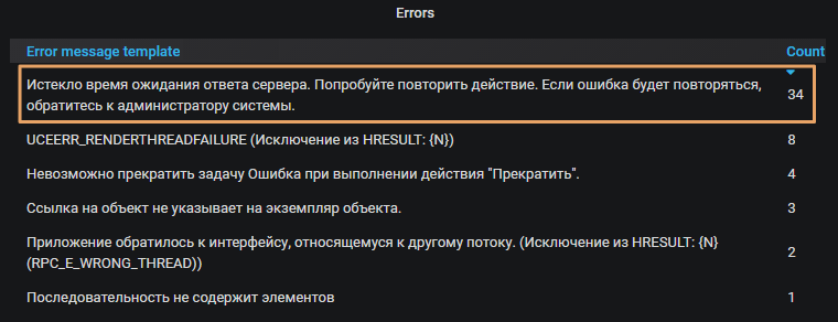 На дашборде с помощью панели Errors можно оценить, насколько часто возникает ошибка, нет ли других массовых ошибок: