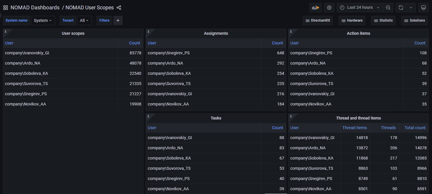 •NOMAD User Scopes – отображает количество офлайн–объектов у сотрудников. Оно влияет на скорость работы и обновления Directum Solo и Directum Jazz.