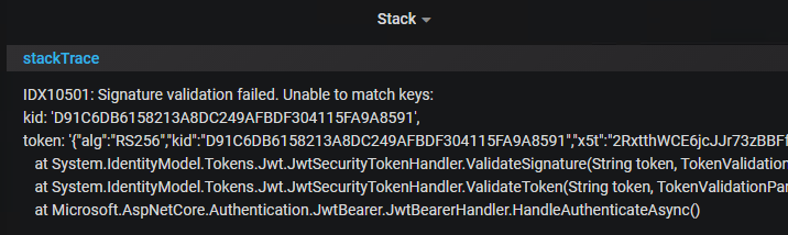 В результате откроется дашборд Detailed Error Information. Стек ошибки отобразится на панели Stack: