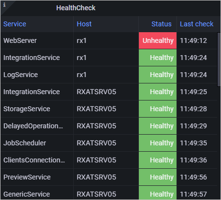 На домашней странице на панели HealthCheck отображается информация из статус-файлов веб-сервера и сервисов Directum RX. С помощью панели можно отследить общие статусы сервисов: