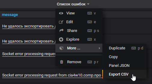 •информацию в CSV-формате с панелей дашбордов. Для этого: