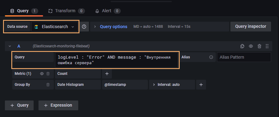 ВАЖНО. Для запросов в Grafana важен регистр. Поэтому проверьте, что в поле Query условные операторы указаны в верхнем регистре.