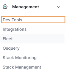 По умолчанию для индексов Elasticsearch установлено ограничение в 2000 полей. Если сообщение занимает больше полей, то оно не попадает в индекс и в лог-файлах контейнера Logstash появляется сообщение вида «Limit of total fields [1000] has been exceeded while adding new fields [1]». Чтобы устранить неисправность, увеличьте лимит полей в индексе. Порядок действий описан на примере индекса rx-log-metrics-2024.01: 1.На странице Kibana в меню Management выберите раздел Dev Tools: