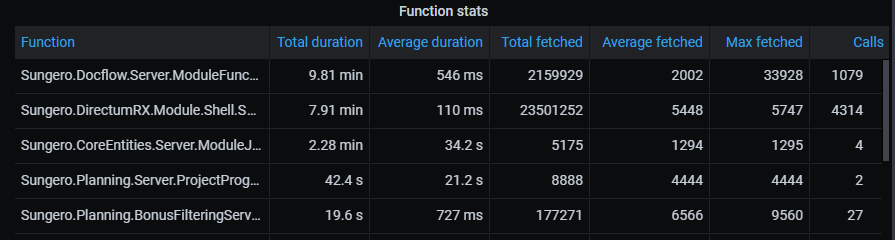 •панель Function stats позволяет оценить, как часто за все время работы системы в коде вызывались неоптимальные функции и сколько записей они возвращали;