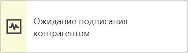 Блок типа «Мониторинг». В нем ожидается подписание документа контрагентом. После этого процесс переходит к следующему блоку. Блок может завершиться с результатами Подписан, Не подписан или Срок истек. Он досрочно прекращает работу, если в карточке документа в журнале передачи оригинала и копий документа установился результат. Если срок прекращения ожидания не указан, устанавливается значение 10 рабочих дней. При старте блока в карточке документа в журнале передачи оригинала и копий документа: •для документа, отправленного курьером или по почте, формируется или обновляется запись «Согласование с контрагентом». В столбце Срок возврата указывается или обновляется дата. Если была запись «Отправка контрагенту», то она изменяется на «Согласование с контрагентом»; •для документа, отправленного через сервис обмена, у записи «Согласование с контрагентом» обновляется срок возврата. Собственное свойство для настройки – Документ. В нем указывается документ, по которому ожидается подписание |