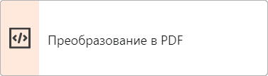 Блок типа «Скрипт». Преобразовывает документы в формат PDF. Для подписанных документов ставится отметка об электронной подписи. Собственное свойство для настройки: Документы. В нем указывается список документов, которые необходимо преобразовать. Со сведениями о регистрации. Если флажок установлен, то при преобразовании зарегистрированного документа добавляется отметка о регистрации. Отметка ставится: •по шаблону, если документ создан из шаблона; •по координатам, если документ ранее преобразовывали вручную и указали расположение отметки. Если добавить отметку не удалось, процесс переходит из блока по выходу Ошибка преобразования |