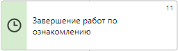 Блок типа «Задание». В блоке создается и отправляется задание на завершение работ по ознакомлению. Его получает инициатор задачи после того, как все участники ознакомились с документом. По умолчанию срок выполнения задания – 2 рабочих дня |
