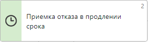 Блок типа «Задание». В нем создается и отправляется задание на приемку отказа в продлении срока. По заданию инициатор может принять отказ или отправить повторный запрос. При отправке повторного запроса необходимо добавить комментарий |