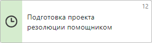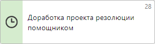 Виртуальный помощник создает проект резолюции, в котором заполняются поля: •Срок проекта резолюции из параметра блока. Если параметр не заполнен, то проект резолюции создается без срока; •Контролер, На контроле, флажок Автоматически выполнить мое задание после выполнения подчиненного поручения в зависимости от персональных настроек исполнителя текущей задачи; •Исполнитель поручения; •Выдал и Пользователь, от имени которого отправлена задача исполнителем текущей задачи; •Текст проекта резолюции, который может быть задан в параметре блока. По умолчанию указано значение «В работу». Проект резолюции добавляется в отдельную группу вложений «Проект резолюции» текущей задачи. Создается запись справочника «Результат обработки документа для исполнения», где фиксируется ИД задачи, отправленной в сервисы Ario. В блоке также проверяется статус обработки задачи по классификации документа сервисами Ario. Ожидается изменение статуса с «В процессе» на любой другой. В результате задача отправляется дальше по стандартной схеме варианта процесса. Например, документ с проектом резолюции отправляется на проверку помощником руководителя или сразу на рассмотрение руководителю. По умолчанию период запуска блока 1 минута, период ожидания – 15 минут. Собственные свойства для настройки: Срок, Текст поручения |