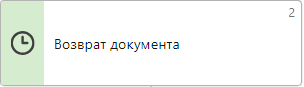 Блок типа «Задание». В нем создается задание на возврат оригинала или копии бумажного документа. Задание можно выполнить только с результатом Вернуть документ. При этом в карточке документа на вкладке «Выдача» проставляется отметка о возврате: поле Результат возврата заполняется значением На контроле, а поле Дата выдачи – текущей датой. По умолчанию срок выполнения задания – планируемая дата возврата документа |