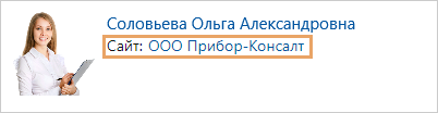 Пример 2. Добавление ссылки на корпоративный сайт с заданным текстом и заголовком