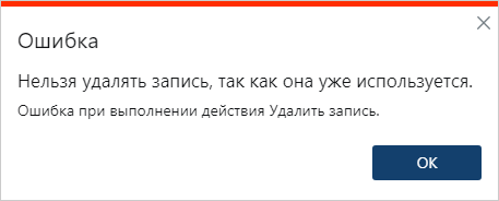 Dialogs.ShowMessage("Нельзя удалять запись, так как она уже используется",