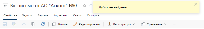 // Показать всплывающее сообщение с информацией о том, что дубли не найдены.