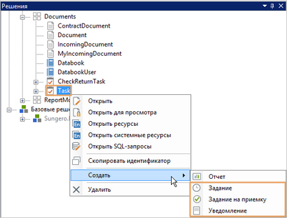 •перекрывать задачи, задания, задания на приемку и уведомления из базовых решений и вносить в них изменения. Подробнее см. «Что можно изменять в перекрытии»;