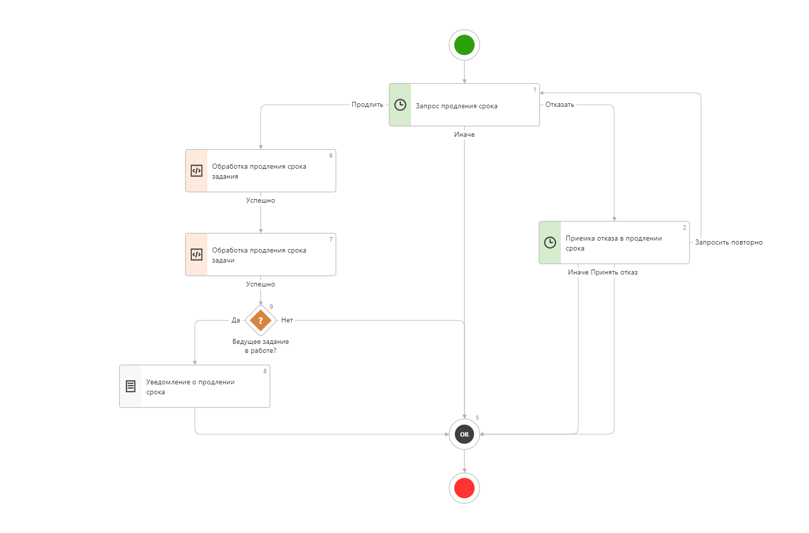 При добавлении действия по продлению срока в новом типе задания, при необходимости нужно самостоятельно реализовать дополнительную логику: