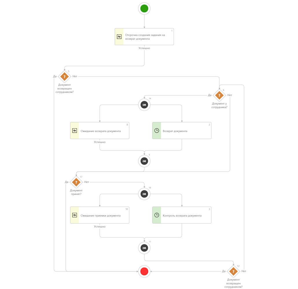 << Click to Display Table of Contents >> Объектная модель > Базовое решение Directum RX > Docflow – документооборот > Задача на контроль возврата > CheckReturnTask – контроль возврата документа Вариант процесса и схема в среде разработки |