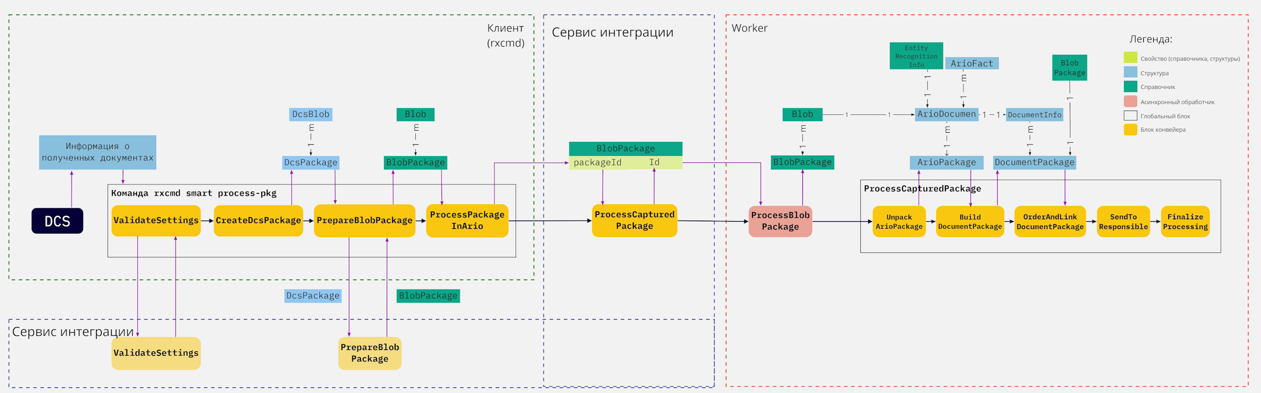 1.DCS захватывает файлы и запускает команду RxCmd smart process-pkg, которая стартует клиентский конвейер со следующими этапами: