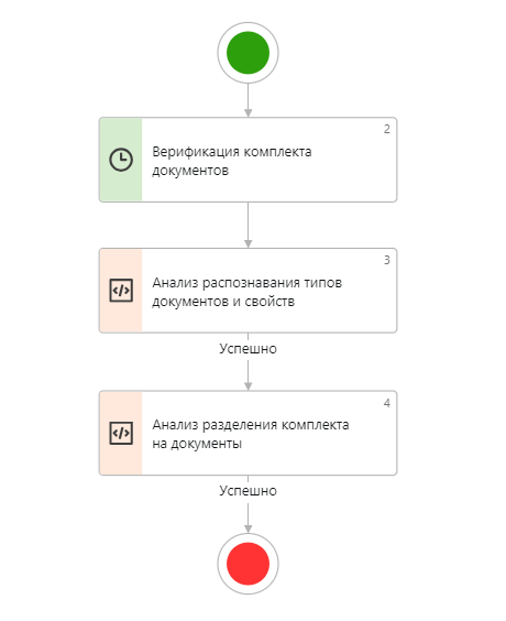 Вариант процесса «Верификация комплекта документов» реализует схему обработки поступивших документов.
