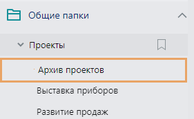 •хранить в папке документы, задачи, записи справочников и другие объекты, которые необходимы для работы по проекту. Для этого добавляйте в папки ссылки на нужные объекты системы;