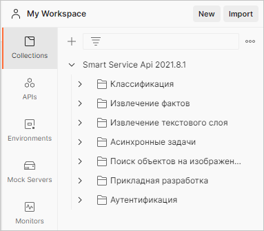 В результате в рабочем пространстве Postman появится коллекция с примерами запросов:
