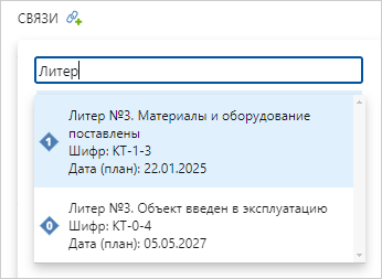 Связи этапа также отображаются в его карточке в области Связи в виде ссылок. При нажатии на ссылку открывается карточка связанного этапа.