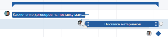 Связь также можно установить на диаграмме Ганта. Для этого наведите курсор на этап-предшественник. Слева и справа от его границ появляются маркеры, отражающие начало и окончание этапа. Зажмите левой кнопки мыши нужный маркер и протяните от него стрелку до начала или окончания зависимого этапа.