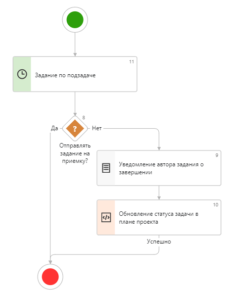 Схема варианта процесса по умолчанию «Подзадача по проекту»: