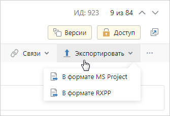 По умолчанию экспортируется последняя версия плана. Если нужно экспортировать другую версию, в ее контекстном меню выберите пункт Экспортировать.