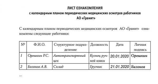 Есть документы, по которым необходимо зафиксировать факт ознакомления, например, правила техники безопасности на рабочем месте. В подобных случаях принято, чтобы сотрудники проставляли подпись в листе ознакомления, журнале ознакомления или непосредственно на бумажном экземпляре самого документа (при небольшом количестве участников ознакомления).