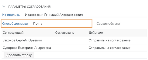 1.В карточке задания на доработку документа в поле Способ доставки укажите необходимый способ доставки бумажного экземпляра документа контрагенту, например, Почта: