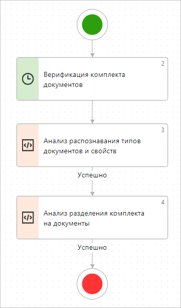 Блок типа «Скрипт». Дополняет результаты распознавания сущности для документов во вложении после задания на верификацию: •заполняет статус обучения классификатора по типам документов. Указывается статус «Ожидает обучения»; •заполняет значения полей Подтвержденное значение и Заполнено в коллекции полей фактов. Не имеет собственных свойств для дополнительной настройки. |