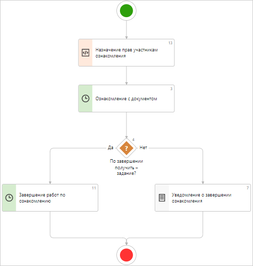 В результате новый вариант процесса станет действующим. Он автоматически выбирается системой в задачах на ознакомление с документом, если: