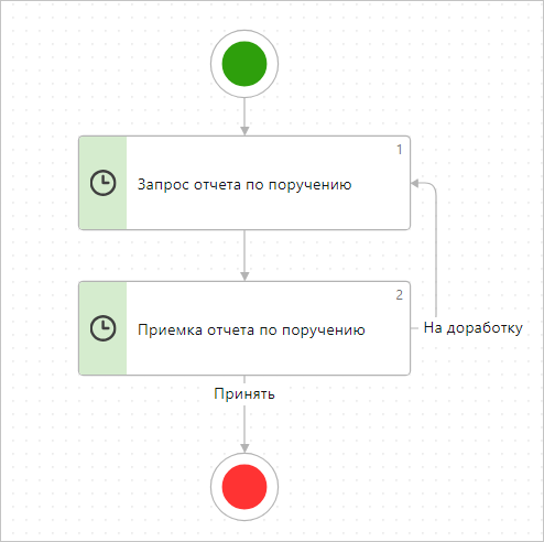 Блок типа «Задание». Создает задание на подготовку и доработку отчета по поручению. Его можно выполнить с результатом «Отправить отчет» |