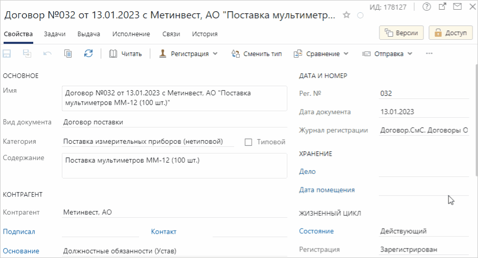 Примечание. Права доступа к папке и задаче настраиваются аналогично документам.