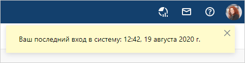 При входе в систему появляется уведомление о времени предыдущего входа, если администратор включил соответствующую настройку.