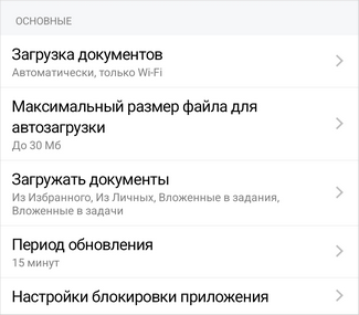 •Автоматически, только Wi-Fi. Документы загружаются автоматически только при использовании Wi-Fi-подключения. При обращении к документу, который еще не загружен, загрузка будет начата независимо от типа сети.