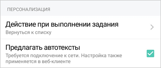 Предлагать автотексты. Если флажок установлен, при добавлении комментария к задаче или заданию можно использовать автотексты. Они доступны, если устройство находится в сети. Настройка также применяется в проводнике Directum RX. Если автотексты выключены, статистика по часто используемым фразам не ведется.