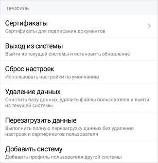 Перезагрузить данные. Удаление данных пользователя, таких как документы, папки, задания. Настройки приложения, учетные данные и сертификаты пользователя не удаляются.