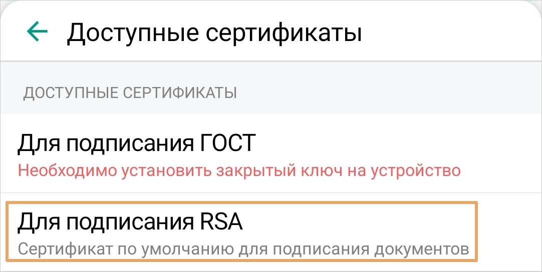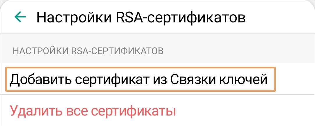 Примечание. Название пунктов меню в настройках зависит от марки устройства и версии операционной системы. Подробнее об установке закрытого ключа см. в документации на телефон.