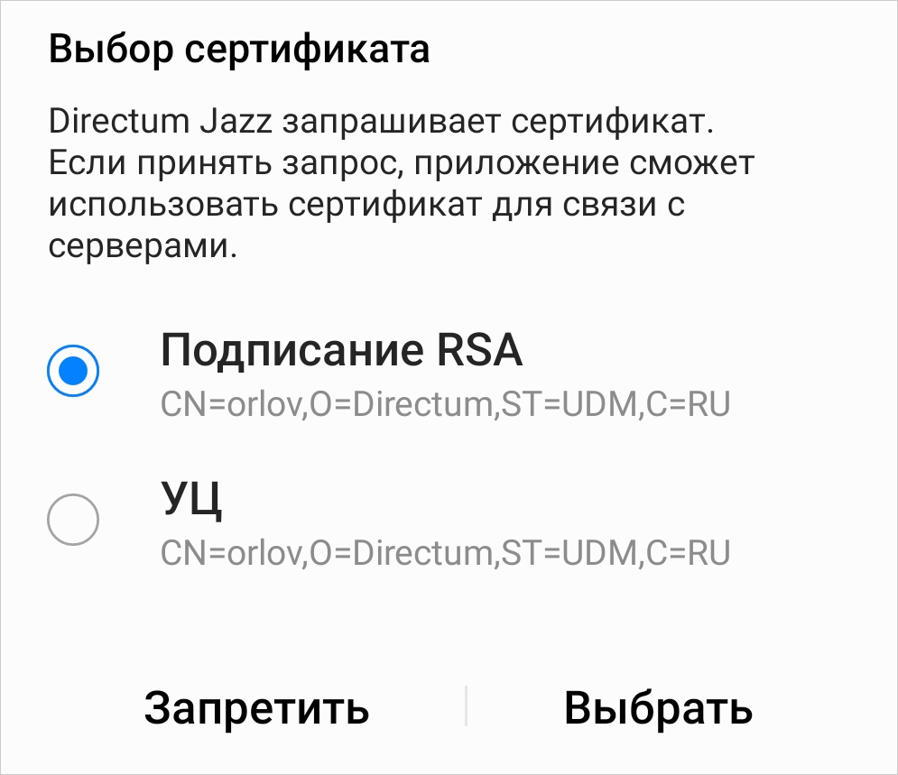 Если в Directum Jazz добавлено несколько сертификатов ЭП, в настройках приложения можно указать, какой из них использовать по умолчанию;