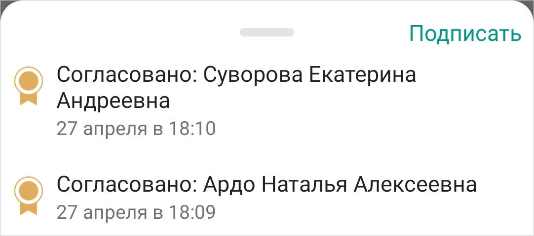 1.Откройте задание на согласование и ознакомьтесь с перепиской. По умолчанию переписка отображается, если на устройстве есть интернет. Показ переписки без доступа к сети настраивает администратор системы.