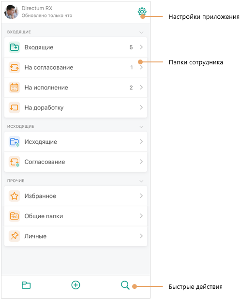 Совет. Чтобы нужные объекты Directum RX были всегда под рукой, добавьте документы или папки в папку «Личные». В этом случае просматривать их содержимое можно, даже если устройство находится вне зоны действия сети.