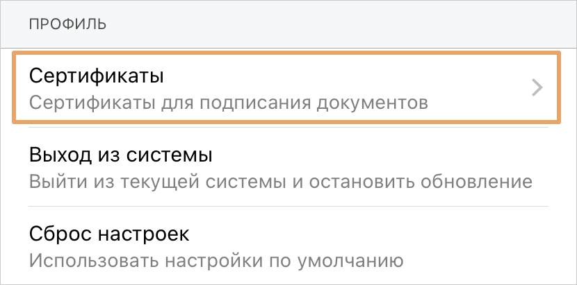 7.Запустите Directum Jazz, затем в настройках приложения в группе «Профиль» выберите пункт Сертификаты: