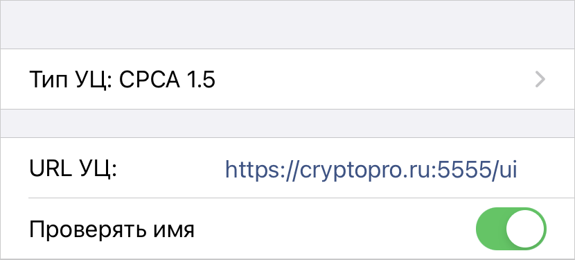Проверять имя сервера. Настройка определяет, требуется ли при работе с УЦ проверять соответствие адреса УЦ и имени сервера из сертификата. В целях безопасности рекомендуется не выключать проверку.