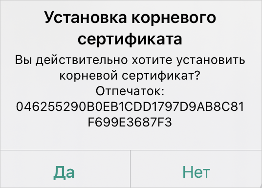 Примечание. В целях безопасности рекомендуется проверить соответствие отпечатка сертификата из сообщения и отпечатка сертификата выбранного УЦ. Отпечаток сертификата УЦ необходимо получить из доверенного источника.
