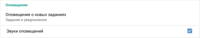 Оповещения о новых заданиях. Можно получать оповещения о заданиях и уведомлениях, только заданиях, заданиях с высокой важностью или не получать оповещений. По умолчанию приходят оповещения о заданиях и уведомлениях. Звуки оповещений. Звуковое сопровождение оповещений о новых заданиях и о приближении срока выполнения задания. По умолчанию включено. |