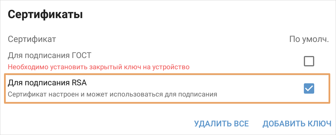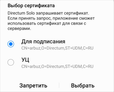 Если в Directum Solo добавлено несколько сертификатов ЭП, в настройках приложения можно указать, какой из них использовать по умолчанию;