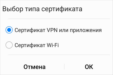 •в настройках устройства с помощью пункта для установки сертификатов. Пример расположения настройки: Безопасность > Установка > Установить из памяти.