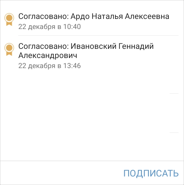4.Добавьте комментарий и выполните задание с одним из результатов. Подробнее о результатах согласования см. разделы «Согласование по регламенту» и «Свободное согласование».