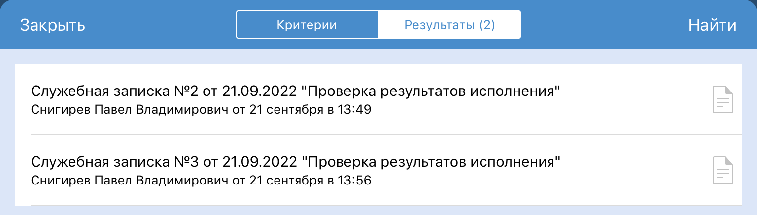 В правом верхнем углу окна нажмите на кнопку Найти. Результаты отобразятся на соответствующей вкладке: